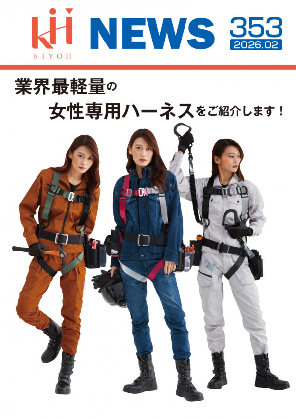 2026.02.27 KH NEWS 353(2026年2月号) 業界最軽量の女性専用フルハーネスをご紹介します! 353号(2026年2月号)は 業界最軽量の女性専用フルハーネスをご紹介します。 今月のKIYOH NEWSでは、 新入社員向け特集の第2弾として、女性専用ハーネスの特長についてお届けいたします。 現場の女性のお声をひとつひとつお聞きして、女性開発メンバーが現場の方の目線に立って作られたのが、基陽の女性用ハーネスです。 試着のたびに多くのかたの笑顔と驚きを引き出してくれる製品ですので、 私たちもサンプルをお持ちする...